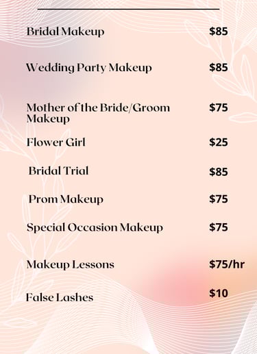 Your wedding day deserves the best, including stunning makeup that lasts all day. Our makeup services offer exactly that, at prices that won't break the bank. Trust our experienced artists to create a customized look using top-quality products, leaving you feeling confident and beautiful on your big day.