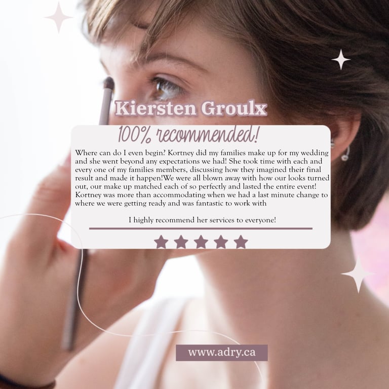 Kortney brings all the supplies to you and creates a look that's tailored just for you. With the flexibility to work around your schedule, you'll never have to worry about finding time to fit in a makeup appointment again. Whether you're getting ready for a special event or just want to feel extra confident, Adry Esthetics has got you covered.